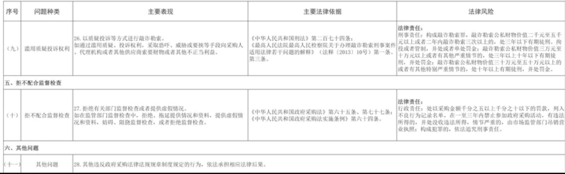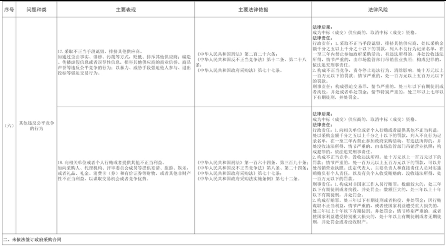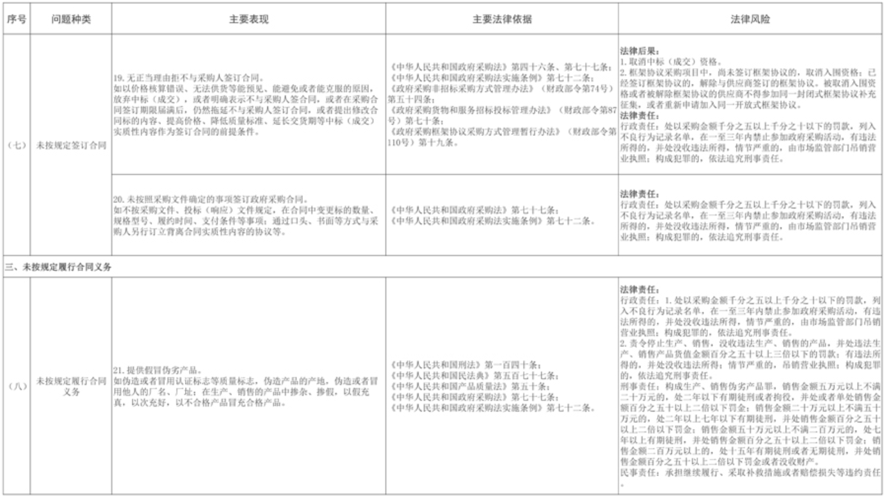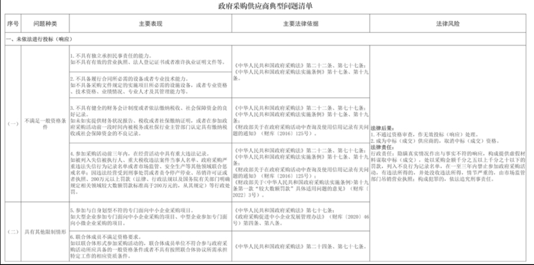 12月22日,四川省财政厅印发《政府采购供应商典型问题清单》(川财采〔2025〕378号),为提高供应商诚信守法意识,营造公平竞争的政府采购市场环境,加大监督执法力度,切实维护政府采购市场秩序。涉及未依法进行投标(响应)、未依法签订政府采购合同、未按规定履行合同义务等6个方面11个问题种类。